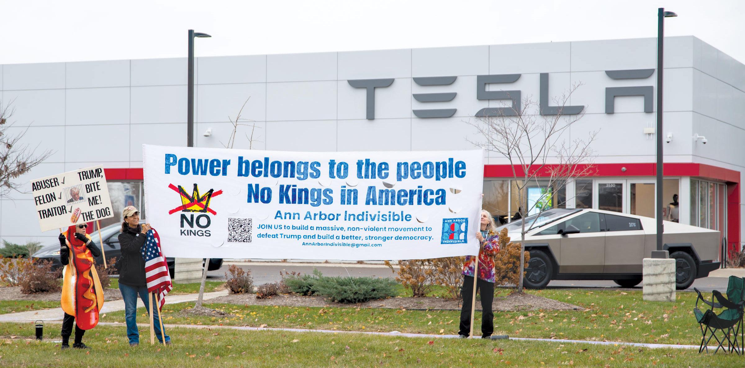 Ann Arbor community protests outside Tesla showroom for ‘No Trillionaires Day of Action’