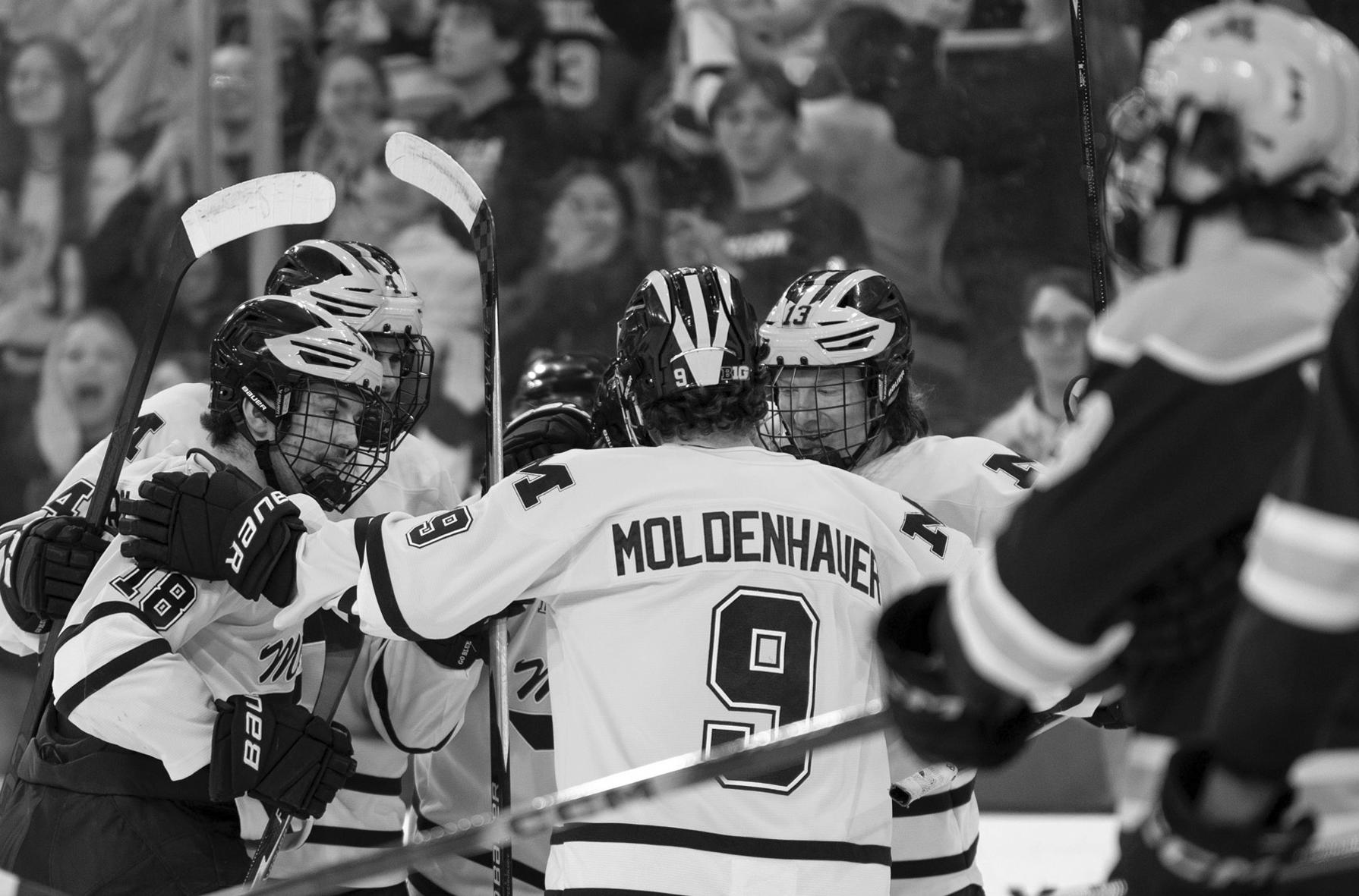 The Wolverines are also deep, with four skaters eclipsing 30 points on the year and junior forward Nick Moldenhauer just two points away from joining the bunch. Last season only T.J. Hughes and Michael Hage reached that mark — this year, the