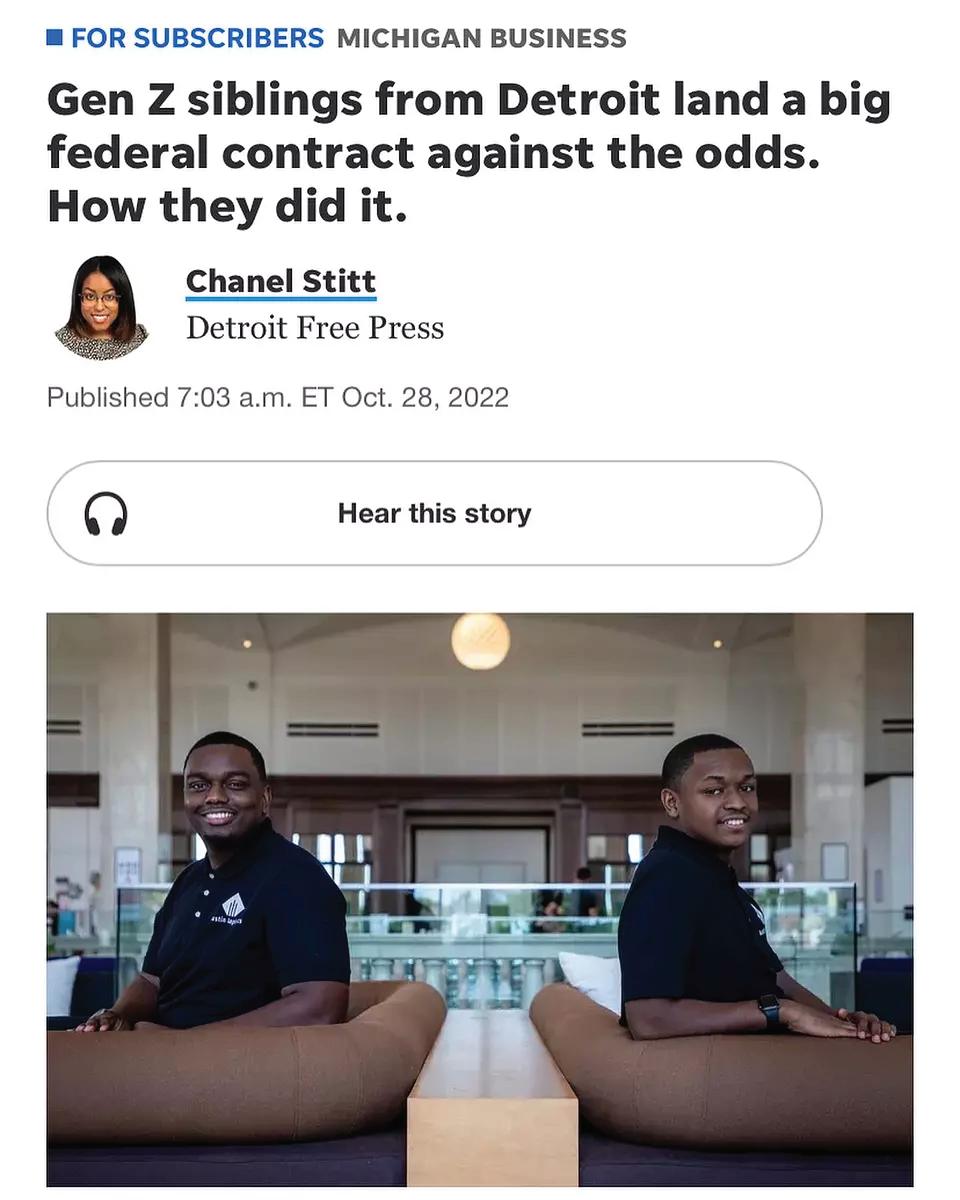Due to this success, the company was invited to speak at a small business event in Atlanta, Georgia, advocating for businesses wanting to enter the procurement space. Most recently, their efforts were acknowledged by the Detroit Free Press and the Small Business Administration for their commitment to community and for inspiring young business owners.
