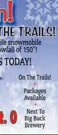 aTiger.And,likeVic, MarkwastotallydediVISITTHE MUNISING AREATHIS WINTER Enjoymilesofgroomedtrailswithoutcrossing astreet.Locatedinaquietneighborhood3 blockssouthofM-28.OnTrail#419 10%OFFYOURSTAYWITHTHISAD TERRACEMOTEL 906-387-2735 420PROSPECTST.•MUNISING,MI49862 WWW.TERRACEMOTEL.NET •AmpleTrailerParking •Sauna/Gameroom •AtDoorParking •HeatedRepairArea •ComplimentaryCoffee •Non-SmokingRooms •ExtendedCable •WirelessInternet INFORMATIONONSNOWMOBILING~OPENALLYEAR •King& QueenSizeBeds •Largerefrig.withFreezer •LargeWhirlpool&Sauna •DeluxeHotBreakfast •DIRECTSNOWMOBILETRAILACCESS •NexttoGas&Convenientstore •Convenient•QuietLocation•NearCasino 906-387-2466 M-28-Munising,MI49862 www,northstarhotelpicturedrocks.com Continuedonpage28