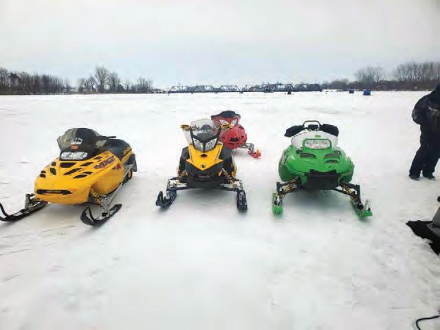primary drop off point, lled many weekends with trucks and trailers as riders race up and down between the bridges or take off for a ride to Saginaw. Later in the day many will ride their sleds up from the river, park and eat at the Bad River Bar and Grill, Tony’s or Subway and enjoy some warm drinks and delicious food.