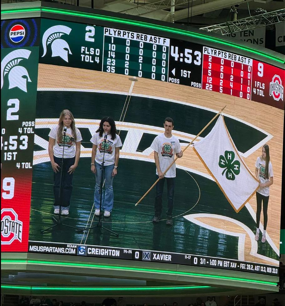 The women’s basketball game was extra special, as it was the twentieth annual celebration of Michigan 4-H Youth Development. 4-H Day at the Breslin brings 4-H members from across the state together for agriculture themed games and activities on the concourse and 4-H camaraderie! Michigan Soybean Committee was able to interact with lots of 4-H members and their families, and share the importance of soybeans.