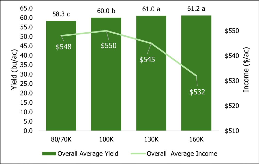yields achieved at 130,000 seeds/ac and maximum net income at 100,000 seeds/ac (Figure 2). If planting into cold soils, consider having a cold germ test performed to better estimate what seeding rate will be needed to achieve a given final stand.