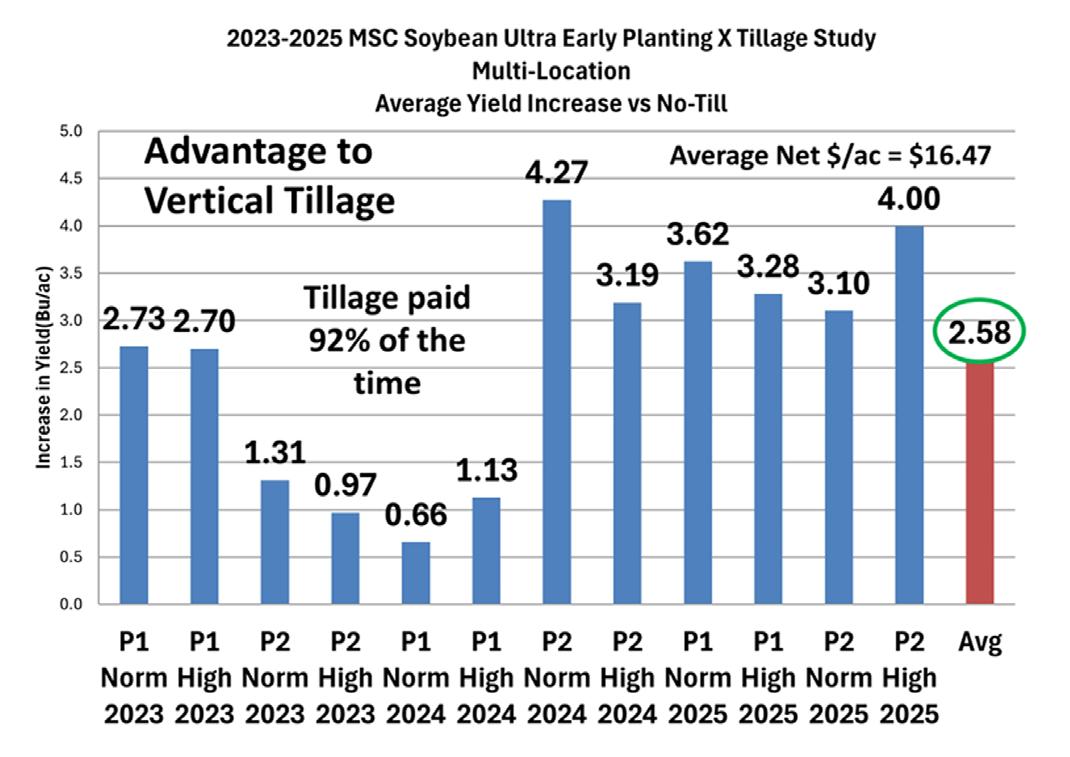 Over the past several decades, farmers across the Midwest have been planting soybeans earlier with the goal of getting soybeans in ahead of corn to maximize yields of both crops. The Great Lakes region has witnessed an increase of 18 annual frost-free days from 1951 to 2024 which has helped with this goal. Michigan soybean growers are currently planting almost half of their soybeans by mid-May compared to early June in the 1980s. Numerous university research trials have shown consistent yield increases when planting soybeans relatively early. Research in Michigan from 2018–2019 with five seeding rates and four planting dates found the maximum yield was achieved at the late April planting time with a final plant stand of 98,000 plants per acre. On-farm trials conducted from 2019–2023 at 25 locations in Michigan found a 1.5 bu/ac advantage on average when planting 2–3 weeks earlier than normal. University of Nebraska-Lincoln researchers investigated the impact of planting dates (Apr 30, May 16, Jun 1, Jun 17) on yield and the length of time to reach various vegetative and reproductive stages. They found planting early was critical to maximizing yield.