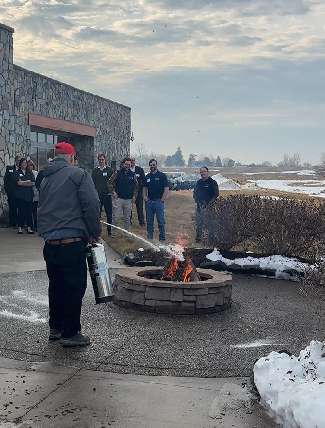 This time, staff shared information about soy biobased products like SoyFoam, a soybean flour-based fire suppressant foam that contains no PFAS or fluorine. Following breakfast and the presentation, Pat Butler of PK Foam Solutions in Climax conducted a SoyFoam demonstration in an outdoor firepit to show how SoyFoam quickly and effectively extinguishes a fire.