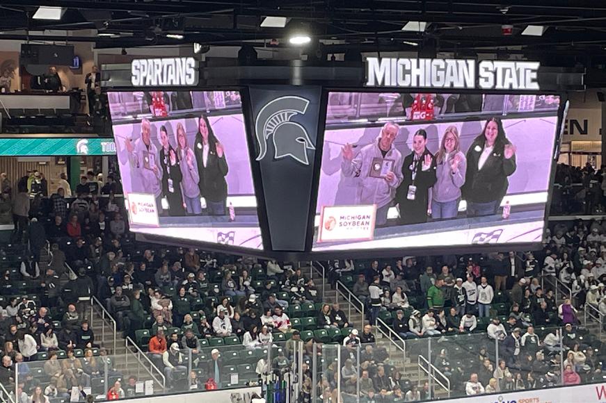 Spartan basketball fans had two opportunities to connect with the Michigan Soybean Committee at the Breslin this year. MSC attended the Men’s Basketball game on February 17 th against UCLA and the Women’s Basketball game on March 1 st against Ohio State. At both games, MSC had an interactive booth on the concourse where fans could stop by to test their soybean knowledge with trivia and win fun prizes.