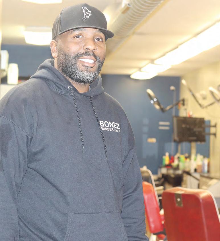 RAMONE PIERCE, OWNER OF BONEZ BARBER SHOP. (PHOTO BY ROB TAYLOR JR.)