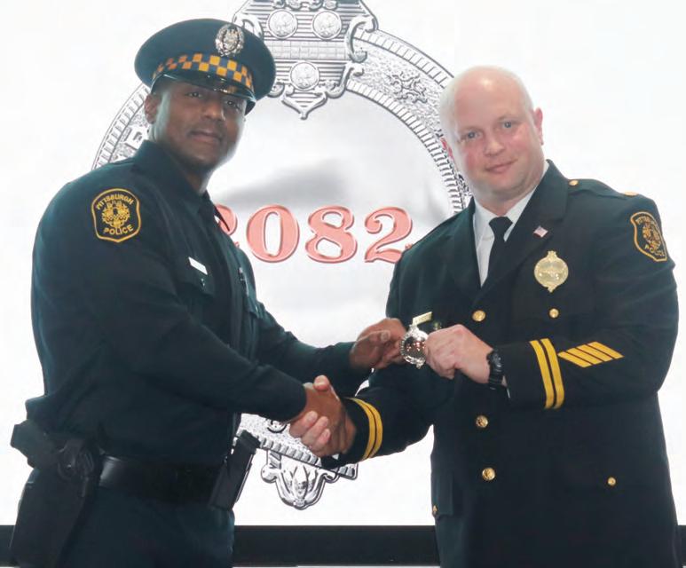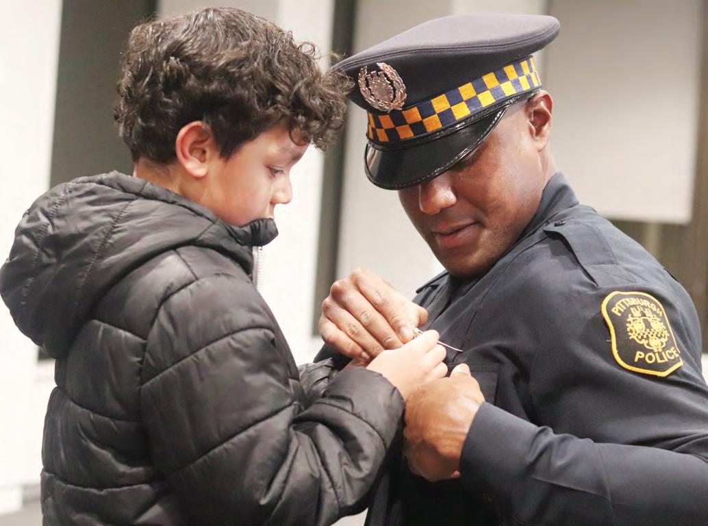 RECEIVING HIS PITTSBURGH POLICE BADGE IS ASTON YOUNG, LEFT.