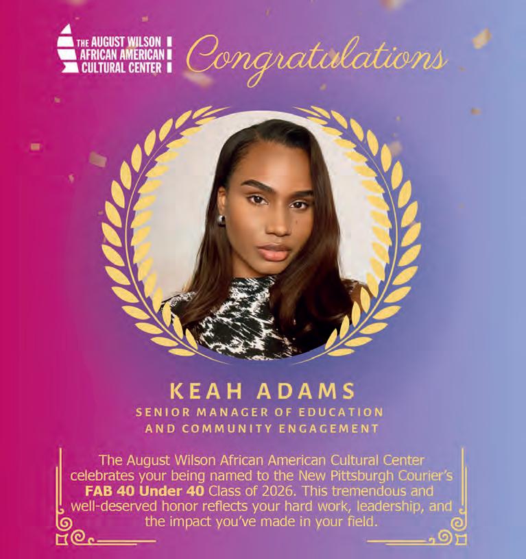 UPMC is proud to support the New Pittsburgh Courier and the Fab 40 Under 40 Awards. We extend our warmest congratulations to all of this year’s honorees — including our very own Dante’ Josey and Christina Kenney. Your leadership, dedication, and impact in the community inspire us all.