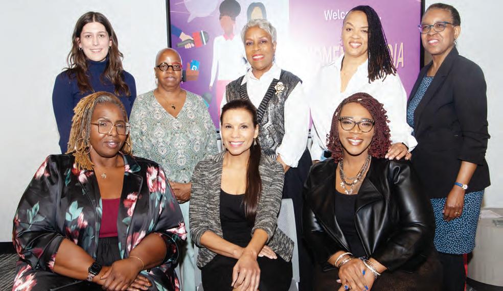E. SMITH II, who was honored during this year’s enshrinement ceremony. From left to right: Kelly Hodges, executive director; John Warren, board member; and Karen Carter Richards, chair; Smith’s wife, Tawonda Peete-Smith; daughter, Brianna Smith-Herman; and sister, Cher D. Smith. Pictured at the far right is Dr. Benjamin F. Chavis Jr. (Credit: AFRO Photo/D. Kevin McNeir.)
