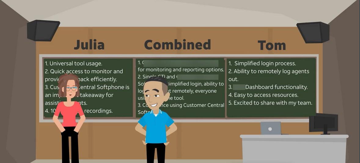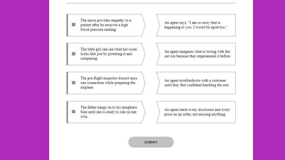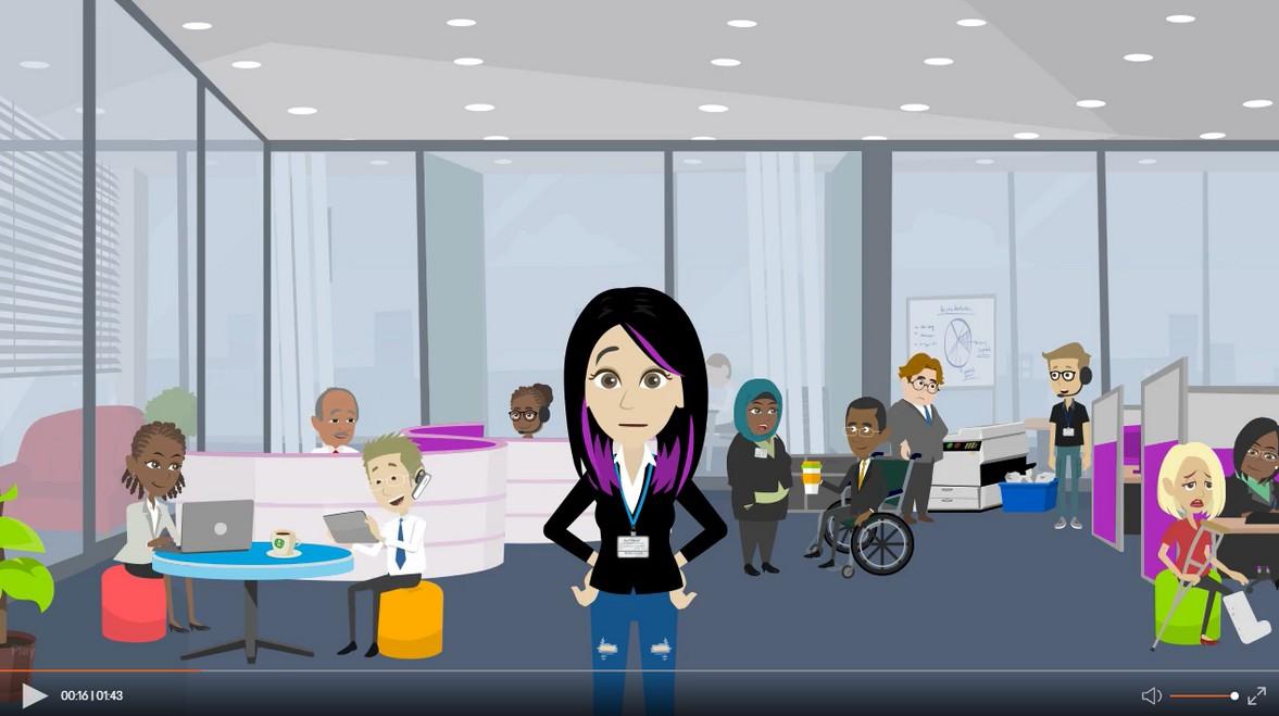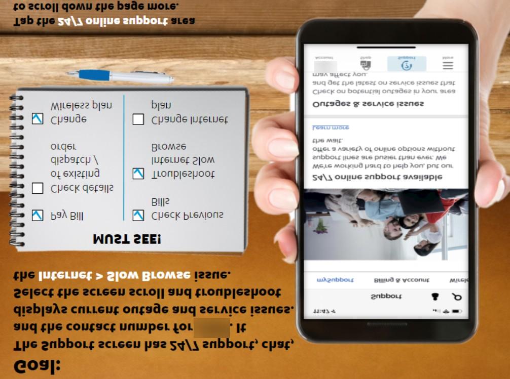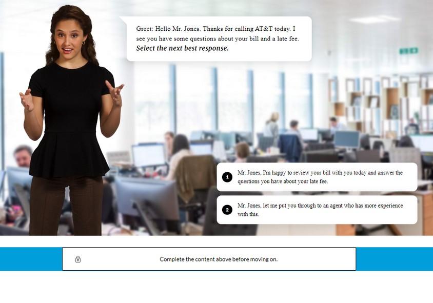 App navigation simulation that starts out with six live-action videos and an arrow to begin. The simulation enables complete exploration of the app, with the aim of visiting specific areas of interest. Each time the learner reaches a goal, they receive a checkmark to indicate completion of that area. Ultimately, they will learn how to resolve specific issues that customers encounter while using the app.