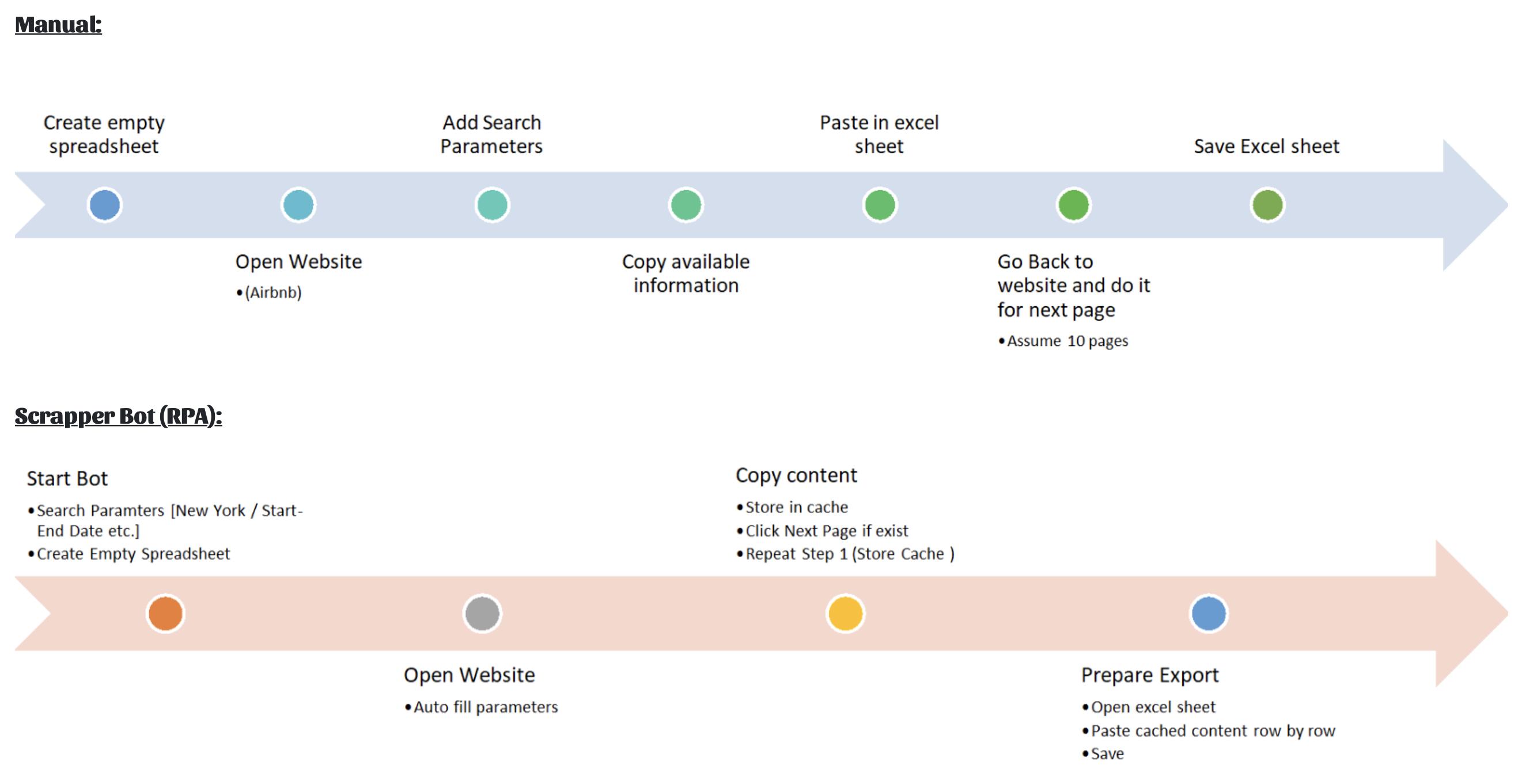 As you can see in this diagram, Manual process will take more user interaction steps than RPA. For an employee onboard manual process will take around 1 hours whereas RPA will around 10 minutes.