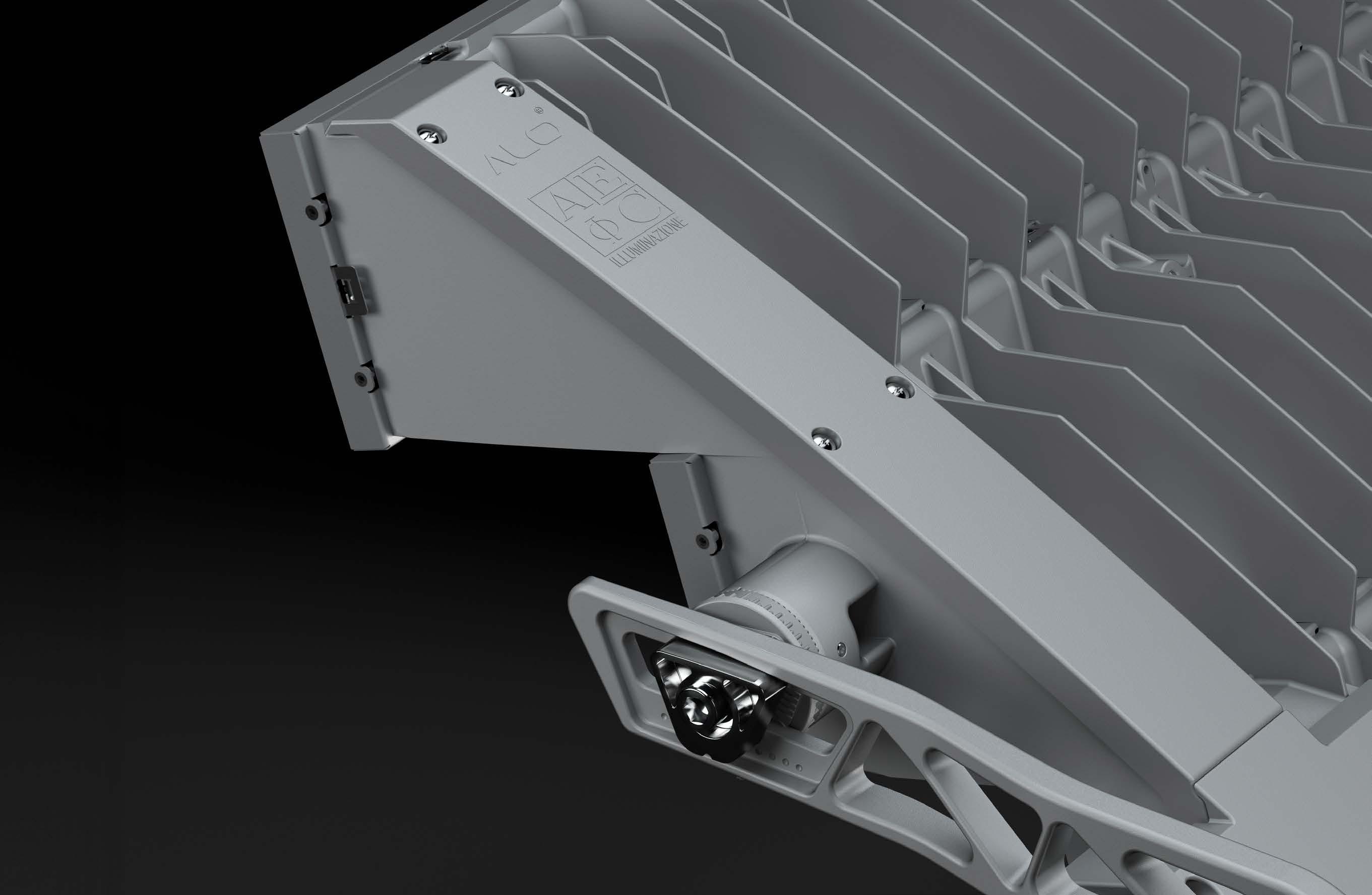 One of the strengths of the ALO series is its excellent thermal management and high heat dissipation capacity. ALO presents, in fact, a particular peripheral dissipation system, obtained through the combined action of fins and open ducts, designed to create a greater flow of laminar air. This efficient thermal dissipation guarantees a very long life of the floodlight and high reliability.