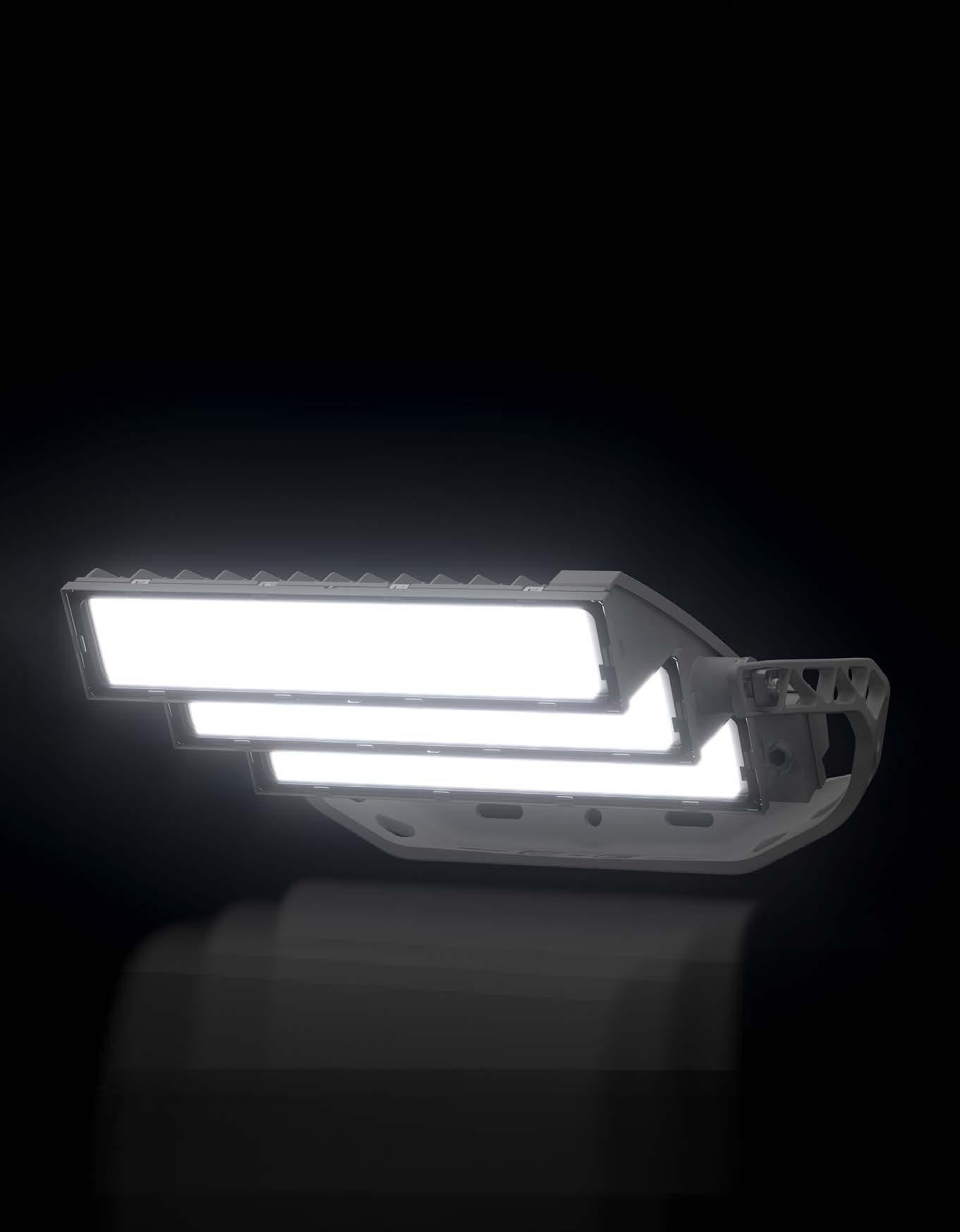 The optical system consists of 3 lighting solutions (central, left and right) which, when used in combination, go to satisfy all types of installation and minimize the number of luminaires required.