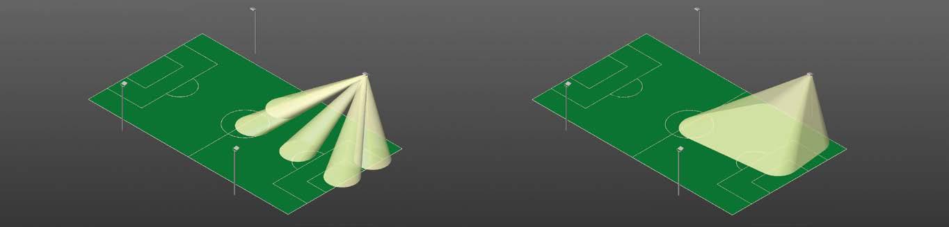 Il sistema si compone di 7 differenti ottiche simmetriche floodlighting, per un’illuminazione puntuale sul campo. L’elevata disponibilità di fasci permette al progettista di ottimizzare la luce in ogni direzione con estrema flessibilità.