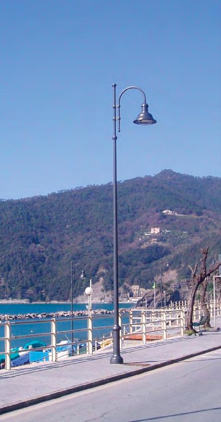 Conical steel pole, welded and de-beaded, consisting of one single longitudinally bent section. Conical drawn aluminium tip with plastic end. The pole has a standard spigot for the installation with 60 mm of diameter. Fastening base plate. Terminal box slot with finished edges, also suitable for the application of a flush mounted cover. Hot galvanized in accordance with ISO 1461, and subsequent brushing to ensure perfect surface finish. Polyester powder coating. Code 01,02,03,04, RAL on request.