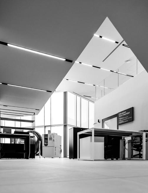 The Innovation Technological Center is a futuristic structure within the AEC Illuminazione Headquarters where all the research and development activities are concentrated and where product tests are carried out.