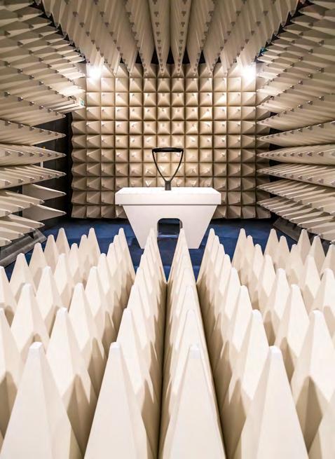 AEC Illuminazione has installed an anechoic chamber, specifically a full anechoic chamber, to perform all the necessary tests required by the international standards of electromagnetic compatibility directly inhouse. The electromagnetic compatibility tests are performed in an anechoic chamber with the aim of ensuring that the luminaires continue to function correctly without interference between them and without being influenced by external frequencies.