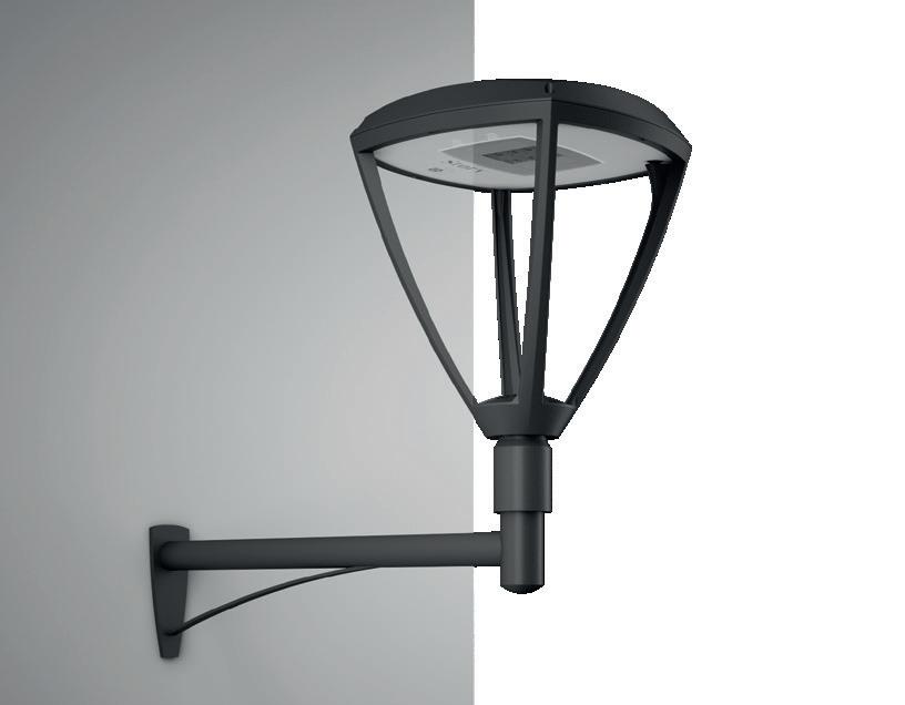 Oltre la versione testa palo, la lanterna STORY è disponibile anche per installazioni su braccio a muro. Il prodotto conferma la sua versatilità anche in contesti dove non è possibile utilizzare pali.