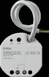 Product Item no. Switching actuator, 1-gang 16 A with 3-gang binary input for Gira One and KNX 5061 00 Switching actuator, 2-gang / blind actuator, 1-gang 16 A with 3-gang binary input for Gira One and KNX 5062 00 Dimming actuator, 1-gang 200 W with 3-gang binary input for Gira One and KNX 5065 00