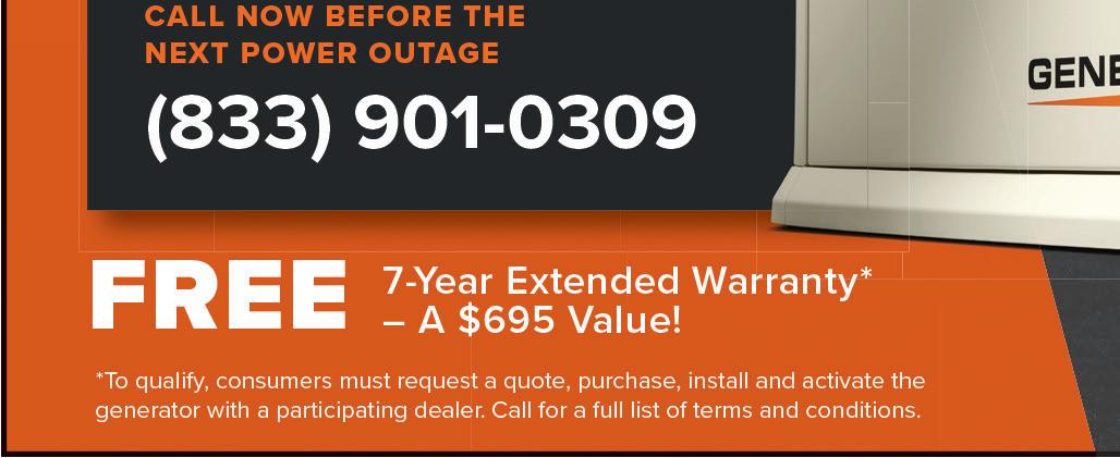 Prepare for power outages today - with a GENERAC home standby generator $0 Money Down + Low Monthly Payment Options. Request a FREE Quote. Call now before the next power outage: 1-833-901-0309. (t/n)