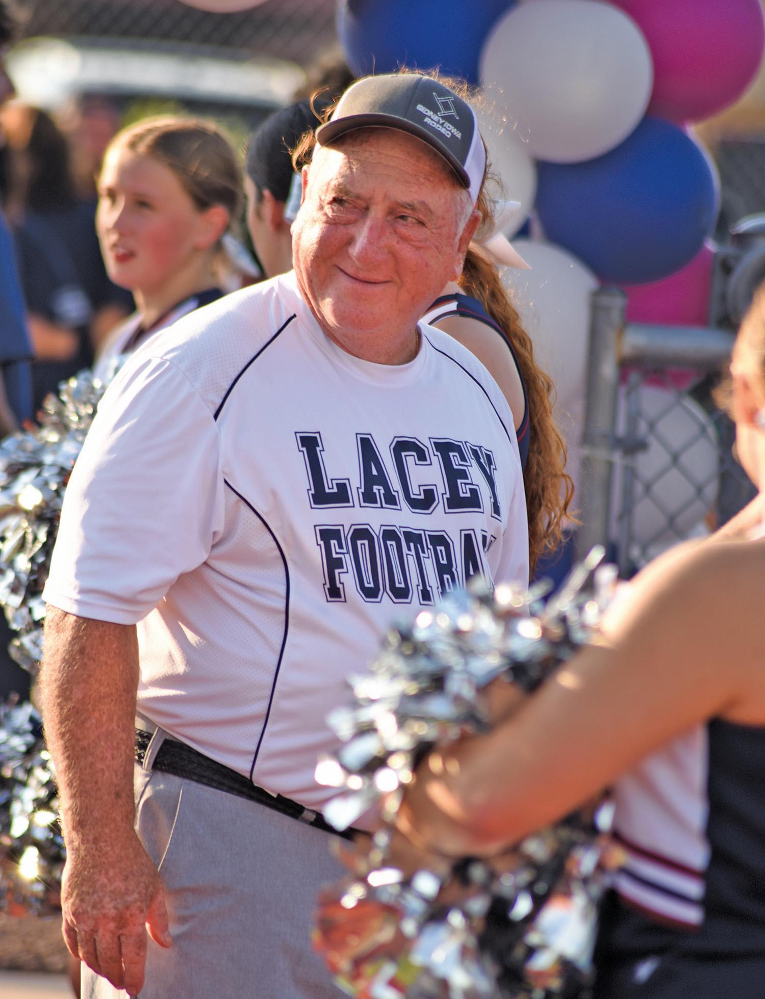 Long time Lacey High School Head Football Coach Louis Vircillo enjoys the dedication ceremony held in his honor that changed the name of the football field to Vircillo Stadium.