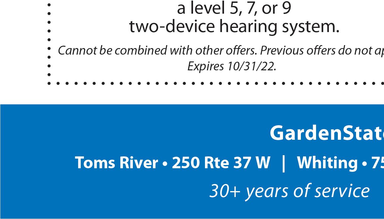 BERGE HVACR, INC. “Come Home to Quality” ENSURE YOUR COMFORT, CALL TODAY FOR A FREE ESTIMATE! 732.350.4666 • BERGEHVACR.COM 0% FINANCING AVAILABLE REBATES AVAILABLE $250 OFF NEW INSTALLATION OF AIR CONDITIONING OR HEATING SYSTEM With coupon. May not be combined. Master HVACR Contractor #19HC002777000 Locally Owned & Operated • Fully Certified Technicians Free Estimates on New & Replacement Equipment • 20 Years of Customer Satisfaction Fast, Courteous Service • Expert Service on ALL Makes & Models Replacement of Heating & Air Conditioning • Gas Conversions Service Contracts • Warranty on All Work Done $150 OFF Central AC or Furnace Replacement With coupon. May not be combined. CHRISTOPHER T. LILLO, D.M.D. Like us on Facebook! Oak Ridge Professional Centre 191 Hwy 37 W • Toms River, NJ 08755 732.341.1120 www.oakridgedentalnj.com 10% OFF All Dental Services For Our Veterans Same-Day Denture Repairs • Interest-Free Payment Plans • Fully participating with Delta Dental PPO & will submit any other PPO insurance plans • Evening Appointments Available • All major credit cards and CareCredit accepted