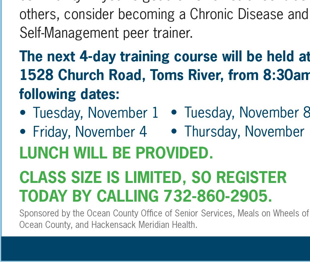 Saturday, Oct. 22nd Ocean County Health Department - 175 Sunset 1PM-3PM