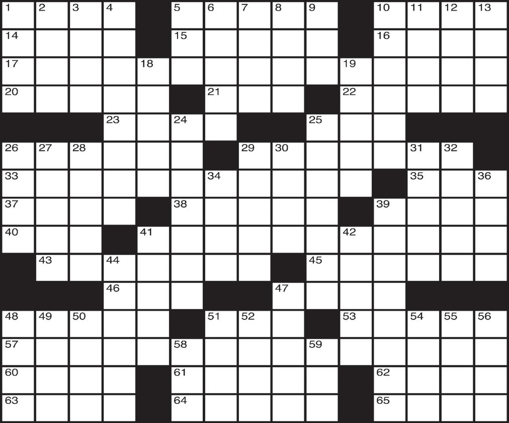 Across 1 Pacific island called “The Gathering Place” 5 Lots of land 10 Workshop gadget 14 Cold-shoulder 15 Material from the French for a Scandinavian country 16 MLB shortstop who agreed to play third because Jeter was already the shortstop 17 King 20 Used, as china 21 Belief ending 22 Mudville dud 23 Theater section 25 “Queer Eye” fashion expert __ France 26 Clara Bow nickname 29 By the seashore 33 King 35 Society newbie 37 Kuwaiti ruler 38 Name synonymous with synonyms 39 Frosty glaze 40 Place to relax 41 King 43 Disco lights 45 Pressing 46 “Who now the price of his dear blood doth __?”: Shak. 47 Roman commoner 48 Part of a 13-piece suit? 7 Touchdown signalers 8 Dutch cheese 9 Champagne label word 10 Unoccupied 11 Some S&L plans 12 Ticked off 13 Water whirled 18 3-Down, poetically 19 Cybercurrency 24 “Hallelujah!” 25 Diplomatic 26 Chatted with, but not IRL 27 Subdues 28 Shimmer 29 Pet store array 30 Snack with Red Velvet and Key Lime Pie varieties 31 Acrobat maker C ROSSWORD P UZZLE 51 19th-century mystery writer with just one complete novel 53 Ristorante order 57 King 60 Short mystery writer? 61 Patch plant 62 23rd-century captain 63 Unfreeze 64 Golfer’s set 65 Relaxing spots Down 1 Job safety org. 2 “It’s __!”: SRO show headline 3 Very significant 4 Less saintly 5 Obstinate mount 6 __ pie 32 Absorb 34 “Ain’t gonna happen” 36 Frank’s cousin 39 Ridges with steeply sloped sides 41 Loom 42 French pancake 44 Capybara, for one 47 Praline nut 48 Unwanted email 49 Fried Dixie bread 50 Badly off base 51 Sound of a contented cat 52 Medley 54 Decide not to go to 55 Giga- x 1,000 56 Sacred cabinets 58 “The Sopranos” org. 59 Store door nos. (c)2022 TRIBUNE CONTENT AGENCY, INC. S UDOKU