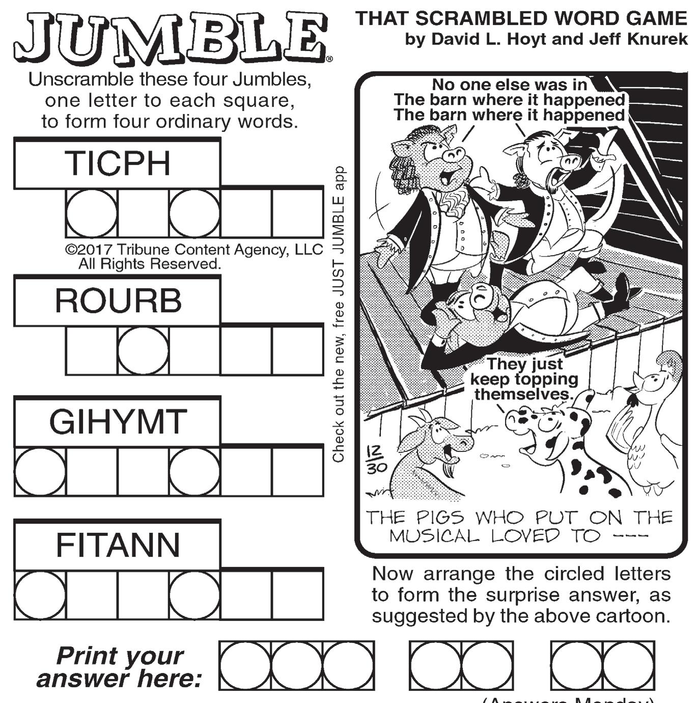 Page 22, The Brick Times, November 12, 2022 jerseyshoreonline.com F un & G ames S udoku Jumble: PITCH BURRO MIGHTY INFANT – HAM IT UP Across 1 Buckwheat por ridge 6 Tears, as paper 10 Hobbyist’s book 15 One submitting a tax return 16 Operatic solo 17 State bordering both Nevada and Canada 18 “Almost!” 19 Drink brand as sociated with NASA missions 20 Fight off 21 “Parking” image, on signs 24 “As I see it,” to a texter 25 Stay alcohol-free 27 Ad that spreads awareness, briefly 28 Baseball’s