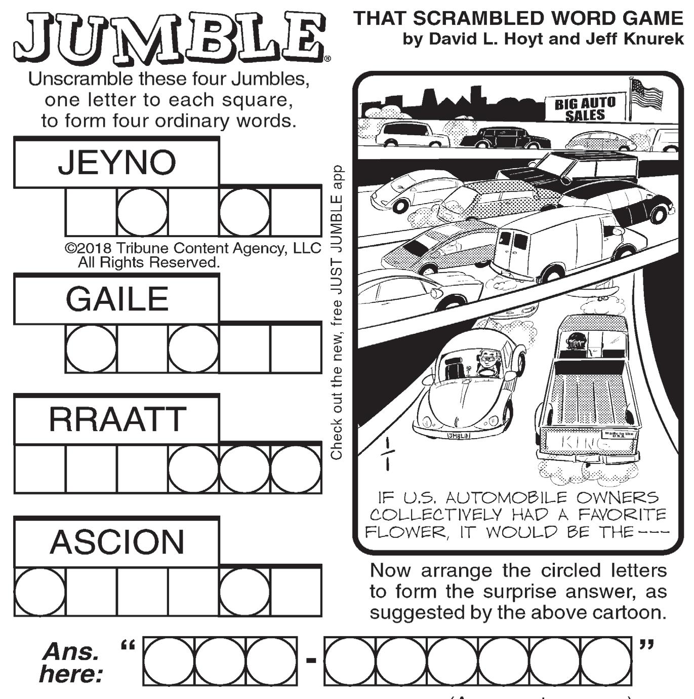 Page 26, The Brick Times, November 19, 2022 jerseyshoreonline.com F un & G ames S udoku Jumble: ENJOY AGILE TARTAR CASINO – “CAR-NATION” Across 1 Toronto Raptors president of basket ball operations __ Ujiri 6 “Ditto!” 11 Qatar’s capital 15 Largest members of the dolphin family 16 B’s equivalent 17 Iridescent gem 18 2010s sci-fi crime drama starring Mi chael Emerson 21 Two after epsilon 22 Full Sail offering 23 “Rats!” 24 Completed in haste 30 Bill collection? 32 Diva’s numbers 33 Stalls 35 NBA official 37 “I’ll skip it” 38 Noodle output? 39 Equine sprinter 42 Leave speechless 44 “Silly me!” 2 Playground rebuttal 3 Prescription,