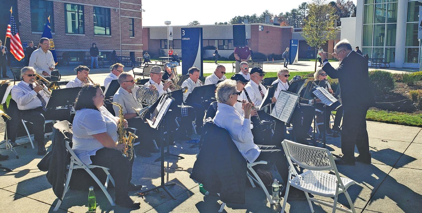 (Top): Members of the Toms River American Legion Post 129 Color Guard were part of this year’s Ocean County College Veterans ceremony. (Bottom): The Ocean County College Concert Band performed the National Anthem and a Salute to the Armed Forces.