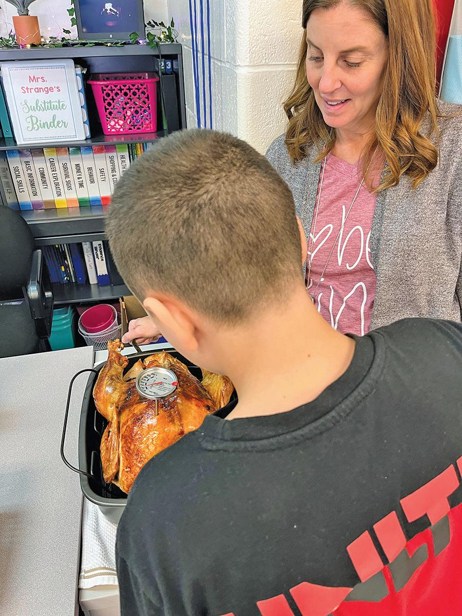 Chef Jill Scott, who teaches Introduction to Culinary Arts to high school juniors and seniors, had organized two assembly lines on the Tuesday before Thanksgiving when the students packed the dinners that consisted of 2 oz. of dark meat, 4 oz. of white meat, stuffing, mashed potatoes, sweet potato mash, green bean casserole and gravy.