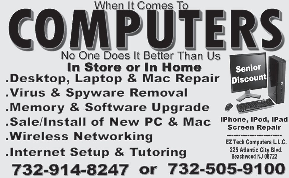 The Toms River Times, December 3, 2022, Page 5 jerseyshoreonline.com 732-349-1448 • www.caretemp.com √ SAME DAY SERVICE/REPLACEMENTS √ CERTIFIED & TECHNICALLY TRAINED PROFESSIONALS √ CERTIFIED, LICENSED, BONDED & INSURED √ SERVING ALL OF OCEAN & MONMOUTH COUNTIES Central Air Conditioning • Boilers • Furnaces • Heat Pumps • Water Heaters • Tankless Water Heaters Oil/Gas/Propane Conversions • Air Cleaners • Attic Fans • Humidifiers • Tune-Ups • Service Plans AWARD-WINNING COMPANY NJ HIC #: 13VH02253000 Fred Paprocky, Master HVACR Contractor Lic#: 19HC00878000 Michael Battaglio Electric, NJ Electrical LIC #: 17909 A-Jay Plumbing, NJ Plumbing LIC #: 12661 *FINANCING AVAILABLE* $25 OFF SERVICE CALL (with repair made while there) Not valid after 4pm on weekdays or on weekend services. Coupon must be presented at time of service. Expires Dec 31, 2022. FREE HEAT MAINTENANCE CONTRACT (FOR NEW CUSTOMERS) Call for details. $500 OFF Gas Conversion $250 OFF New Install of Air Conditioning or Heating System $150 OFF Central A/C &/OR Gas Boiler/Furnace Replacement COUPONS MUST BE PRESENT WHEN SIGNING CONTRACT and may not be used for prior services/installations. Coupons do not expire, except service call coupon. $100 OFF Tankless Gas Hot Water System $50 OFF Gas Hot Water Heater OR FREE 2ND OPINION! 891 Rt. 37 West • Toms River, NJ 08755 HEATING • AIR CONDITIONING BBB Rating: A+ We Service & Install All Makes & Models FREE ESTIMATES Replacements & New Install of Heating & Air Conditioning Units MENTION TOMS RIVER TIMES & RECEIVE ADDITIONAL SAVINGS! ALL new employees may be eligible for $1000 hiring bonus HIRING NOW: Educational Director & Teachers/Assistants 255 Route 70 Toms River, NJ 08755 732-363-5530 tomsriver2nj@goddardschools.com