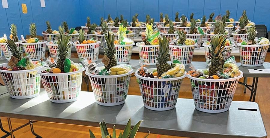 Manchester Schools Manchester Township students gather around a number of food baskets that were distributed recently as part of the 14th Annual Manchester Township High School Helping Hands for Hunger initiative.