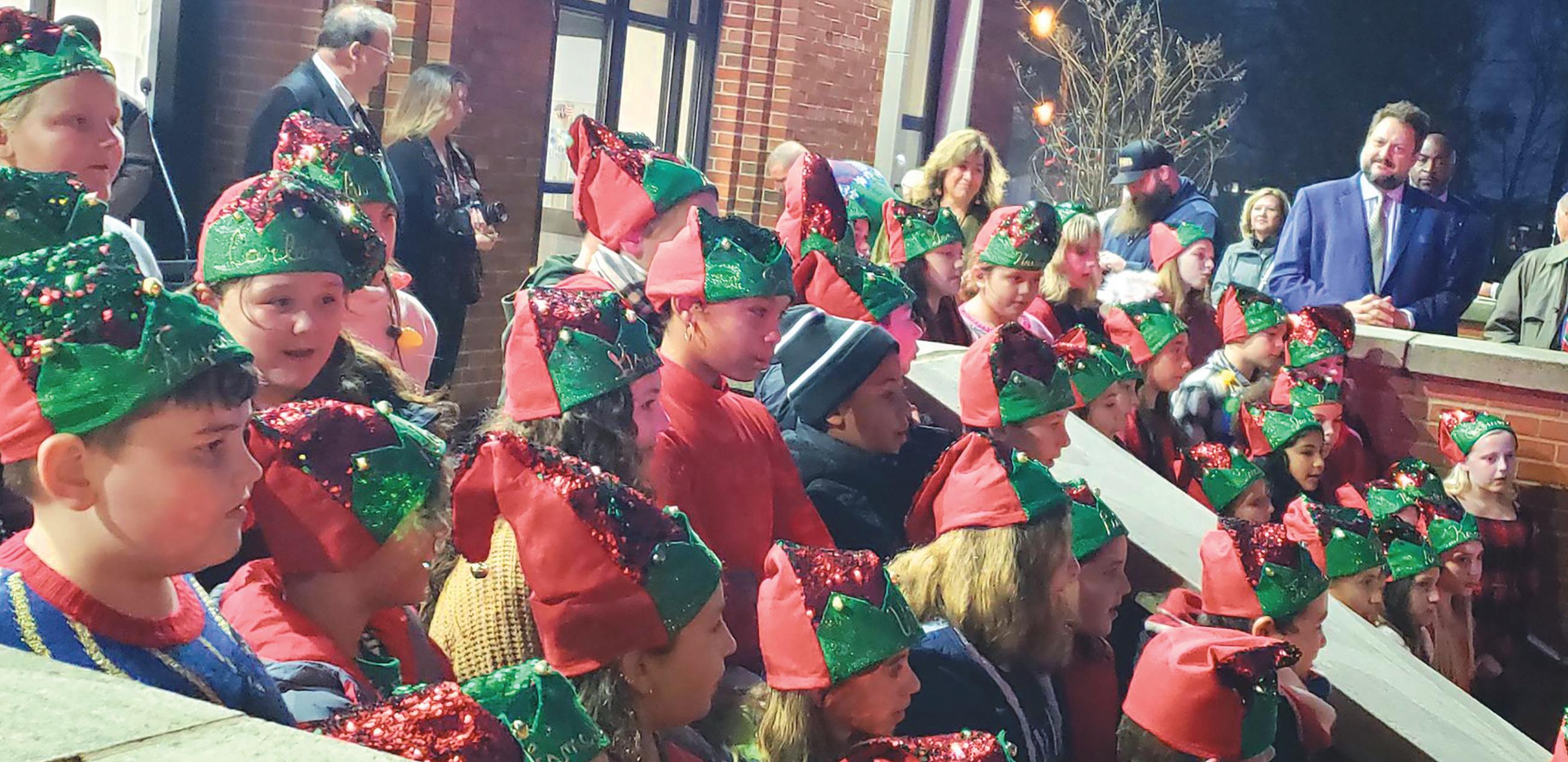 Members of the Pine Beach Elementary School Chorus decked out in Elf attire set the mood for this year’s Ocean County Christmas Tree Lighting Ceremony