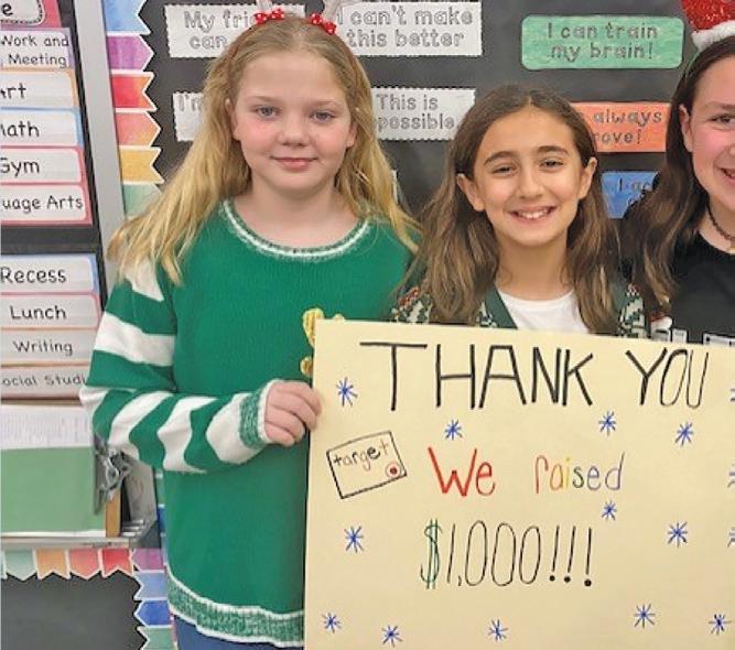 At right, 5th grade students Georgiana Diamandids, Peyton Palmieri and Lia Isaacs were some of many students who helped raise money for families in need.