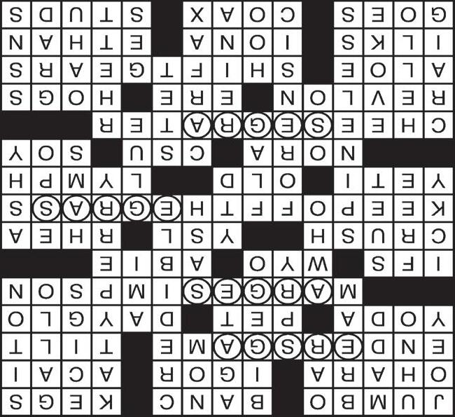Page 14, The Howell Times, April 1, 2023 jerseyshoreonline.com Across 1 King-sized 6 Seat in un parc 10 Beer party staples 14 Scarlett of Tara 15 “Young Frankenstein” aide 16 Dark purple berry 17 Orson Scott Card sci-fi novel 19 Pinball no-no 20 “Anger, fear, aggression: the dark side of the Force are they” speaker 21 Adopted cat, say 22 Radiant pigment 24 Toon spouse with a blue beehive 27 Hypotheticals 30 Old Faithful’s st. 31 “__ Baby”: “Hair” song 32 Beat by a mile 34 Couture initials 35 Ostrich cousin 39 Park warning sign 43 Hairy Himalayan 44 Like King Cole 45 Kind of node 46 Filmmaker Ephron 48 Sch. north of Denver 50 Bean used in nondairy milk 51 Cheddar shredder 56 Elizabeth Arden parent company 57 Coleridge’s “before” 58 Harleys, familiarly 62 Burn balm 63 Go from neutral to singer 11
