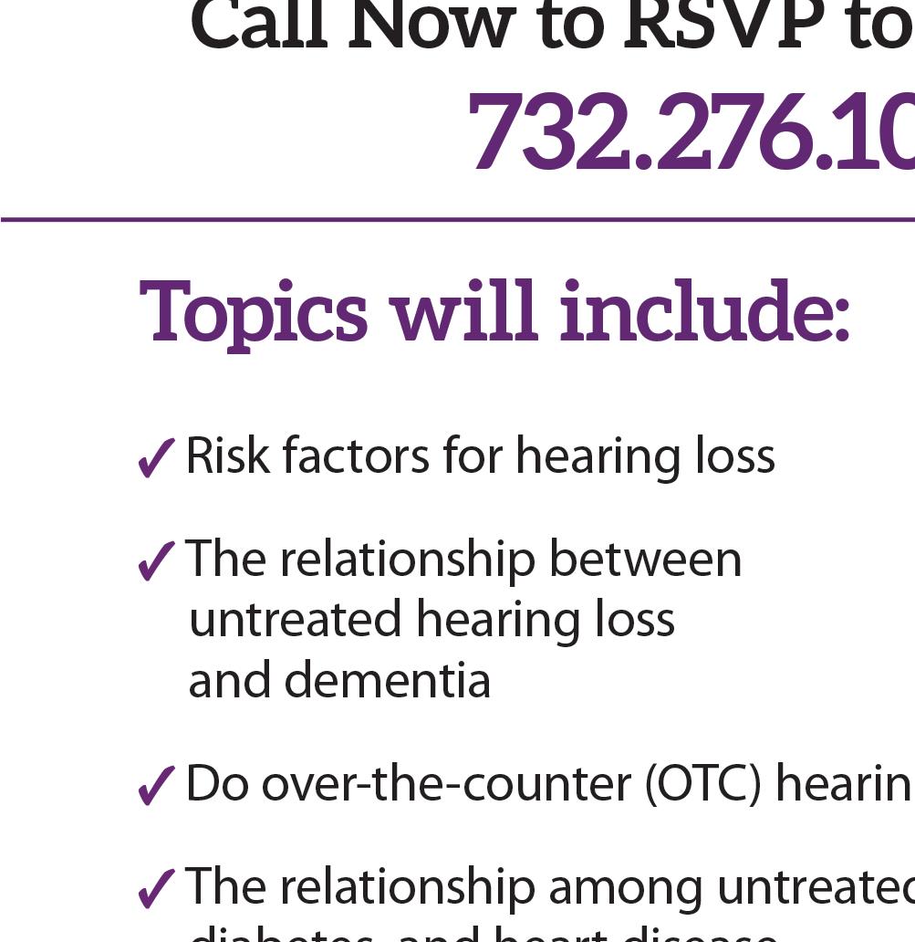 Deborah’s Women’s Health EXPO is April 29 from 10 a.m. to 2 p.m. at the Toms River Clarion, 815 Route 37 West, Toms River. Admission is free. For more information, call 609-893-3372.