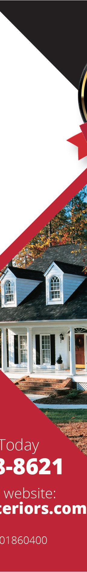 The Howell Times, April 29, 2023, Page 15 jerseyshoreonline.com $116/Month* Valid on qualifying Double Hung Windows only. Not to be combined with any other discount or previous sale. Free upgrade to triple pane glass and 18 months no interest financing for Okna windows. Valid on qualifying ProVia entry doors only. Not to be combined with any other discount or previous sale. *Applies to complete roof or siding replacement of 2000 sq. ft. or more. Cannot be combined with any other offers or previously placed orders. Not valid on partial jobs or repairs.