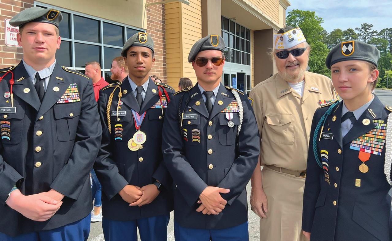 To mark the completion of their mission, the cadets began with a ceremonious flag raising in front of the store on Memorial Day morning. The distinguished group of high school students stood tall during the event, demonstrating a true (JROTC - See Page 9)