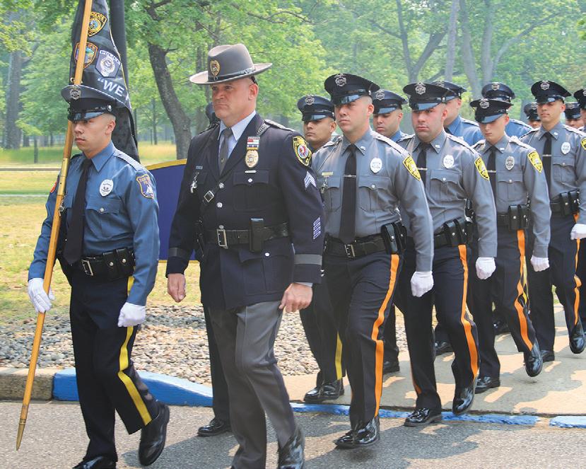─Photo courtesy Ocean County Police recruits from the Ocean County Police Academy’s Basic Police Class #114 file into the Casino Building at Georgian Court University.