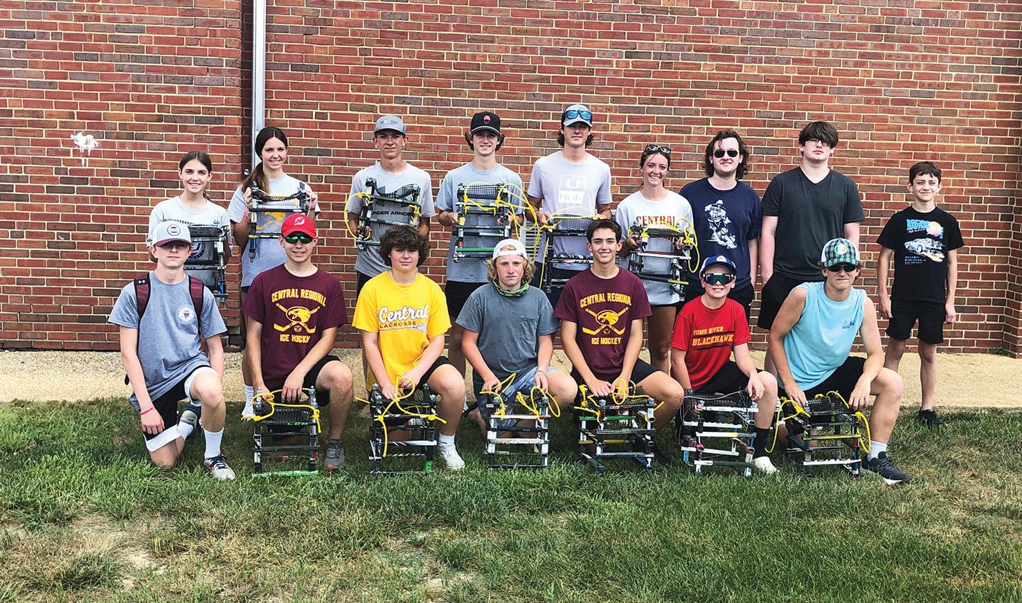 The Central Regional team has been using their broken sticks to build artificial reefs for local waters for years now. The pieces are fastened together to form something that looks like a cross between a crab trap and a chest with the drawers removed. They are then installed in the water for oysters to latch on.