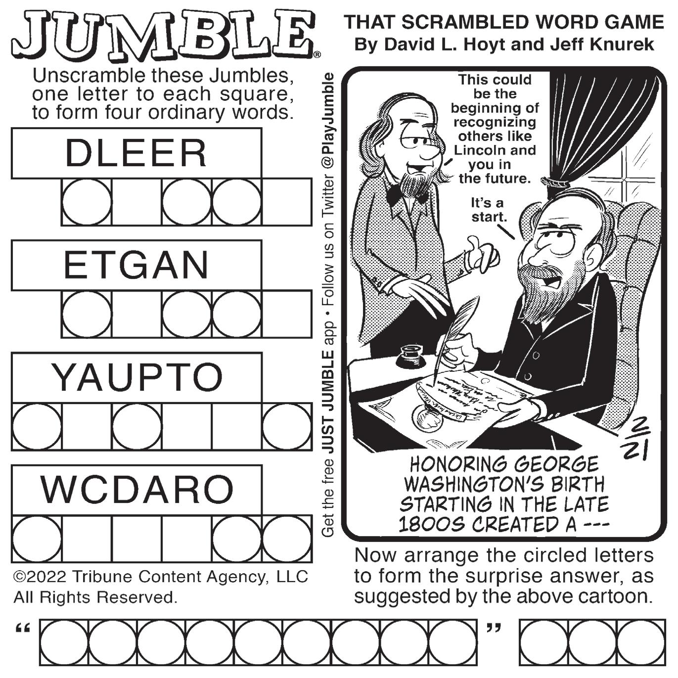Jumble: ELDER AGENT PAYOUT COWARD - “PRECEDENT” DAY
