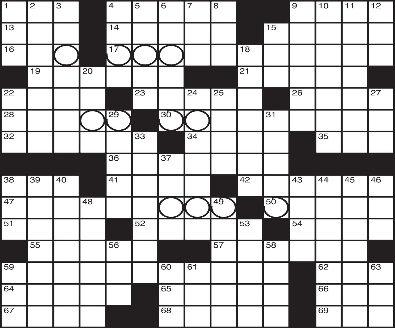 69 __-Mex cuisine Down 1 “This Is Us” TV network 2 Coffee bean variety 3 “Pursue your dream!” 4 Slide on an icy road 5 Was concerned