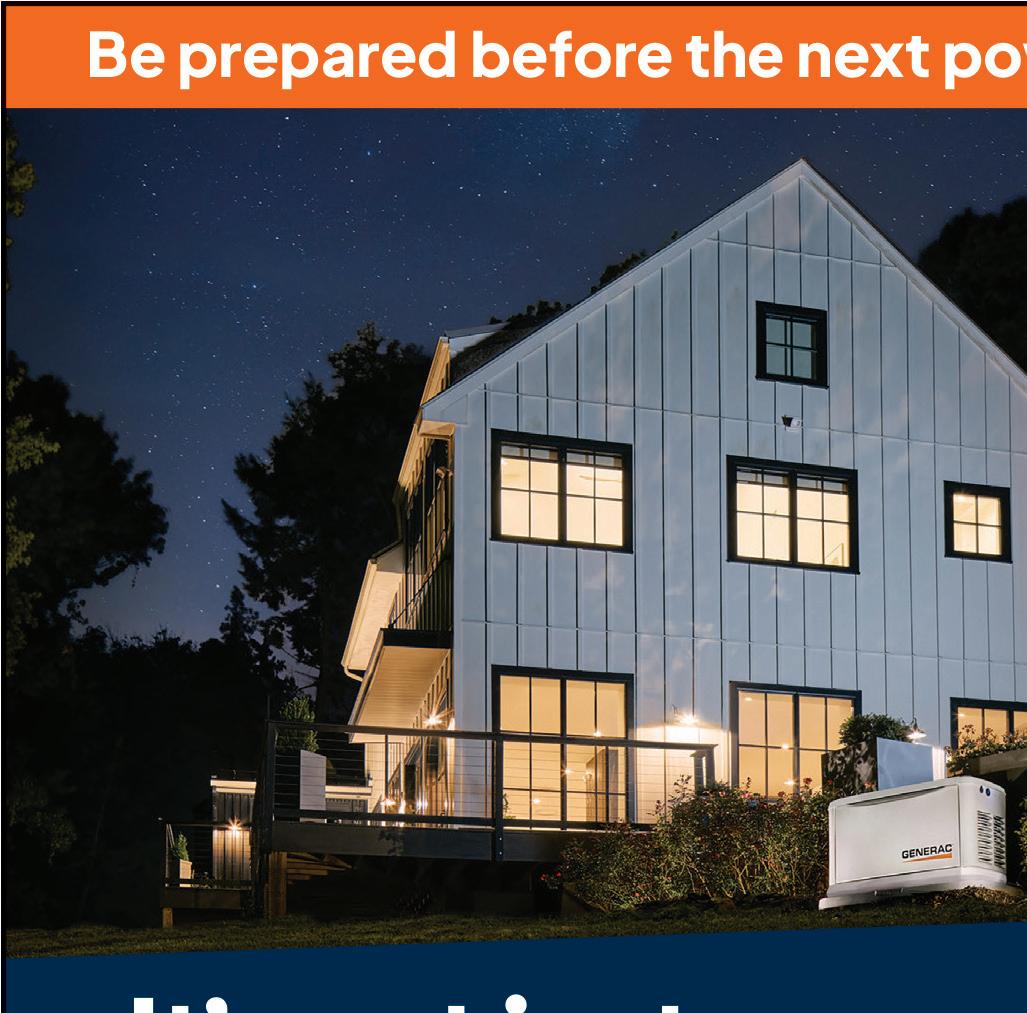 Prepare for power outages today with a Generac Home Standby Generator. Act now to receive a FREE 5-Year warranty with qualifying purchase. Call 1-833-901-0309 today to schedule a free quote. It’s not just a generator. It’s a power move. (t/n)