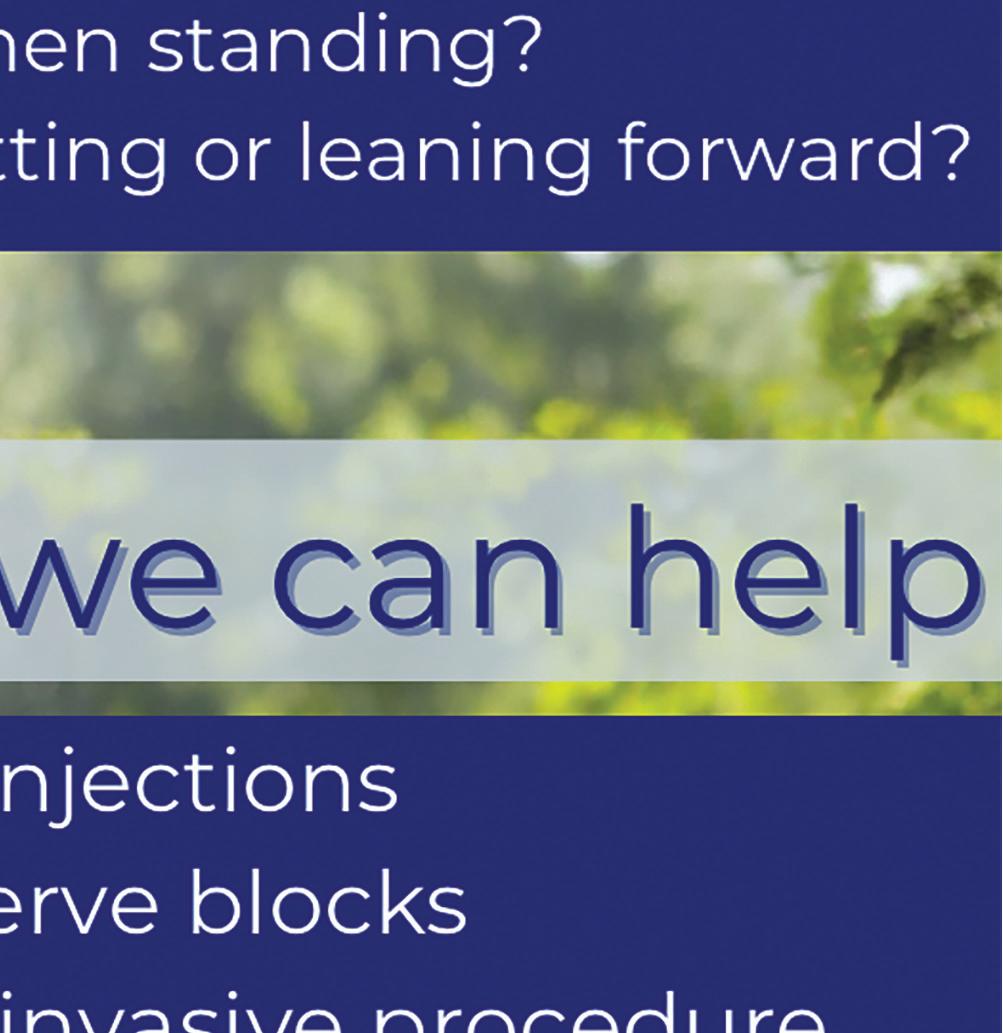 often during your initial visit! “We’re very conservative,” Dr. Amoss assures future patients. “I’m surgically trained but I only like to perform surgery when all other conservative means have been exhausted. It’s going to be painless.” He makes that possible by developing treatment plans for each specific patient.