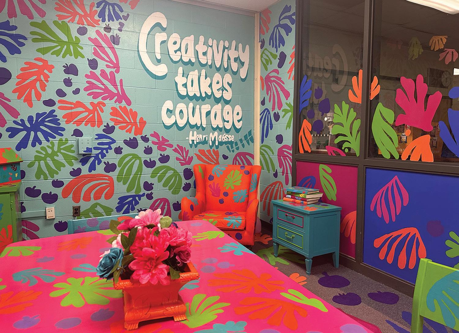 “This is inspired by Henri Matisse, the French artist from the 1920s, and evolved to become this whole immersive space that the students will use and expand next year,” Harzer said. “Mr. Sarluca really inadvertently allowed me to do it because we had a spill and I thought,