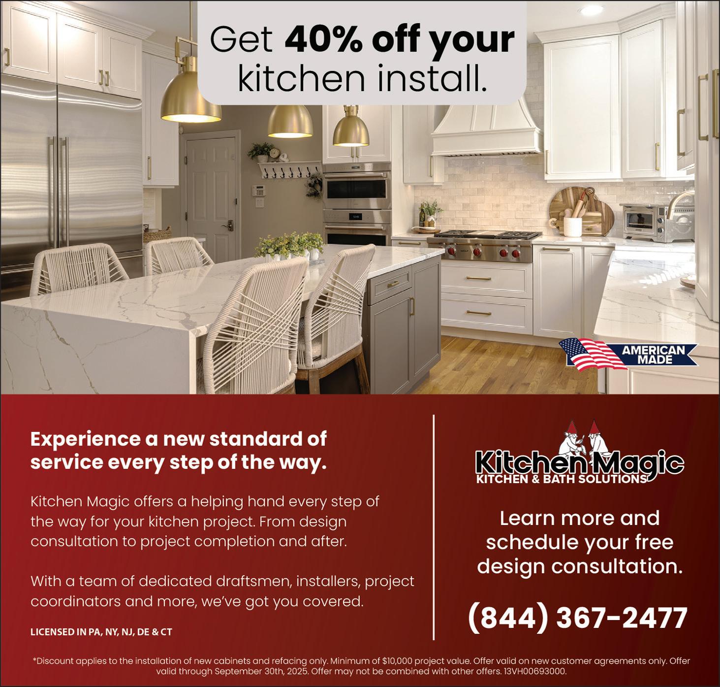 Since 1979, Kitchen Magic, a family-owned business offering cabinet refacing, new cabinetry, and luxury countertop throughout the Northeast. We transform kitchens in less time, with less stress, at an amazing value. Call today for a free estimate 1-844-367-2477. (t/n)