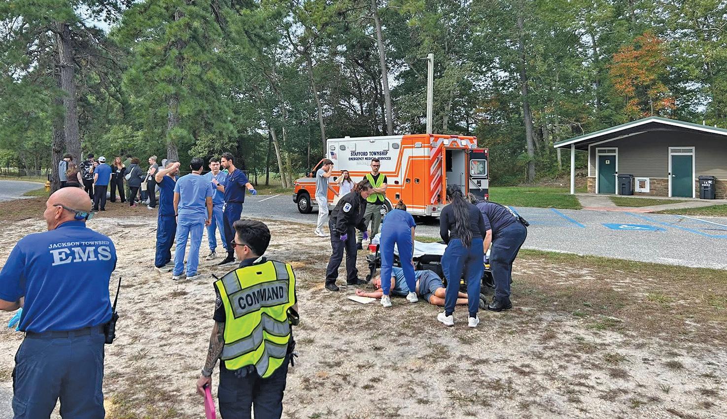 The drill, held at Community Medical Center in Toms River, simulated a mass-casualty incident that overwhelmed the hospital’s emergency department. Responders established triage, treatment and transport areas, working under the Incident Command System to coordinate operations. Stafford EMS was among the agencies on the front lines, training alongside units from Jackson, Manchester, South Toms River, Point Pleasant Borough, Brick Township, RWJBarnabas Health Mobile